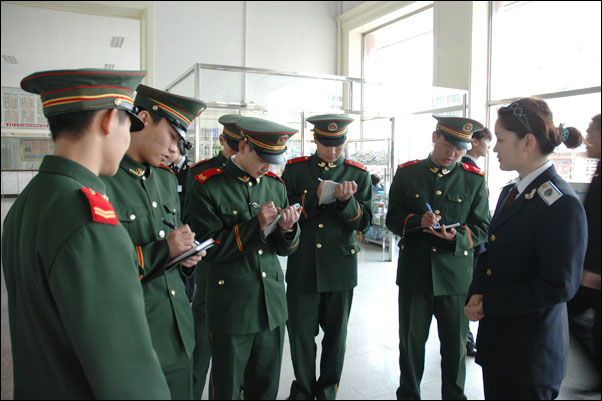 為了增強邊檢官兵的服務(wù)理念,提高邊檢站服務(wù)質(zhì)量,東寧邊檢站于4月18日來客運站進行了為期3天的學(xué)習(xí)交流活動。在活動中站務(wù)員以多種形式向邊檢官兵介紹了客運服務(wù)中的站務(wù)工作內(nèi)容、崗位服務(wù)標(biāo)準(zhǔn)等相關(guān)業(yè)務(wù)知識和注意事項,以及遇到突發(fā)事件的處理方式,并就工作中遇到的問題進行了討論,得到了邊檢站官兵的一致好評。此次警民共建學(xué)習(xí)活動的開展增進了彼此的了解,達到了良好的促進服務(wù)質(zhì)量的目的。