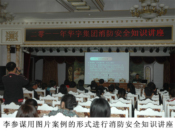 ? 為全面貫徹學(xué)習(xí)《國(guó)務(wù)院關(guān)于進(jìn)一步加強(qiáng)企業(yè)安全生產(chǎn)工作的通知》著力完善華宇集團(tuán)的消防安全培訓(xùn)體系,增強(qiáng)各崗位員工的安全防范意識(shí),10月29日上午9點(diǎn),“2011年華宇集團(tuán)消防安全系列培訓(xùn)”在酒店多功能廳召開。安全監(jiān)察局副局長(zhǎng)雷超、縣消防大隊(duì)參謀李兵、集團(tuán)黨委副書記宋陽(yáng)參加了本次活動(dòng)并作重要講話。會(huì)議由工會(huì)主席姜陽(yáng)主持,各單位經(jīng)理、企業(yè)安全負(fù)責(zé)人、一線技術(shù)工人、辦公室文職人員、警衛(wèi)安保人員、及俄羅斯經(jīng)濟(jì)貿(mào)易合作區(qū)的7家聯(lián)營(yíng)單位代表,共計(jì)128人參加了培訓(xùn)。