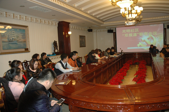 2019年1月18日,客運站黨支部、華宇酒店黨支部聯(lián)合光明社區(qū),共同開展“雙報道”聯(lián)席會議活動。會議主要有兩項議程,一是討論制定2019年聯(lián)席會議輪值順序。二是認(rèn)領(lǐng)春節(jié)貧困戶慰問名單。