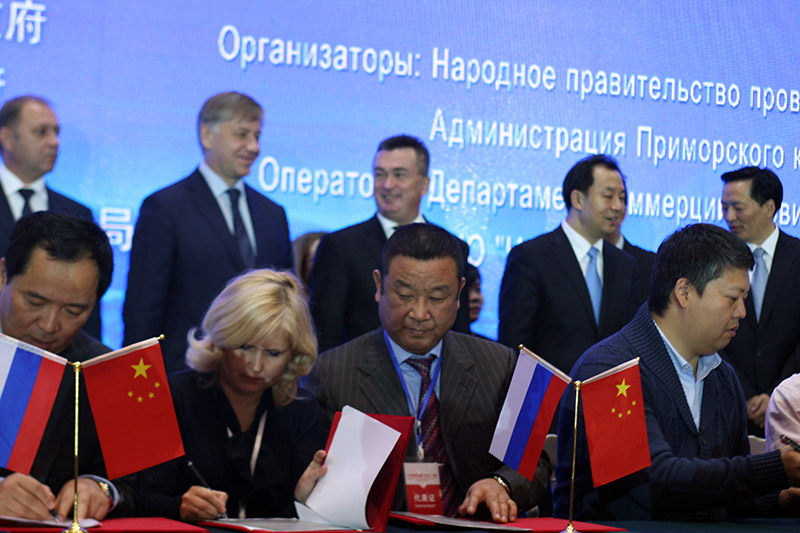 11月14日,在俄羅斯符拉迪沃斯托克舉辦了2016俄羅斯濱海邊區(qū)“黑龍江日”活動。黑龍江省省長陸昊、濱海邊區(qū)州長米克盧舍夫斯基、中國駐符拉迪沃斯托克總領(lǐng)事館副總領(lǐng)事周宏友出席開幕式暨企業(yè)合作洽談會并致辭,省委常委、副省長李海濤主持開幕式。兩省區(qū)政府有關(guān)部門、市地政府及企業(yè)代表500余人出席。華宇集團(tuán)董事長紀(jì)文楠與俄羅斯飛馬公司代表在會上簽訂了貿(mào)易合同。